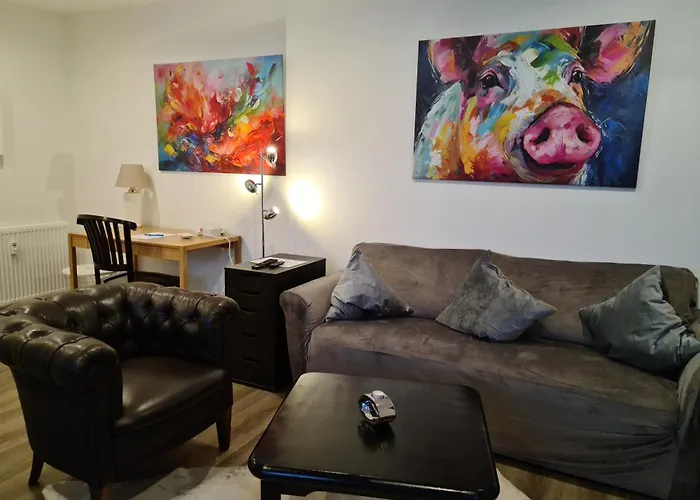 Un hervidor eléctrico, nevera y utensilios de cocina también están incluidos en una cocina completa. La parada de autobús Bruchstrasse está a aproximadamente 5 minutos a pie.